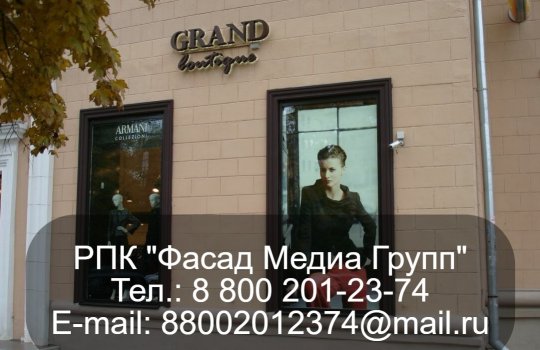 РПК «Фасад Медиа Групп» выполнила заказ нашего клиента по изготовлению рекламных световых букв. Рекламная конструкция потребовалась нашему заказчику –  магазину модной одежды «Гранд» Работы были выполнены за 15 рабочих дней