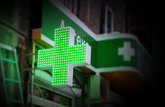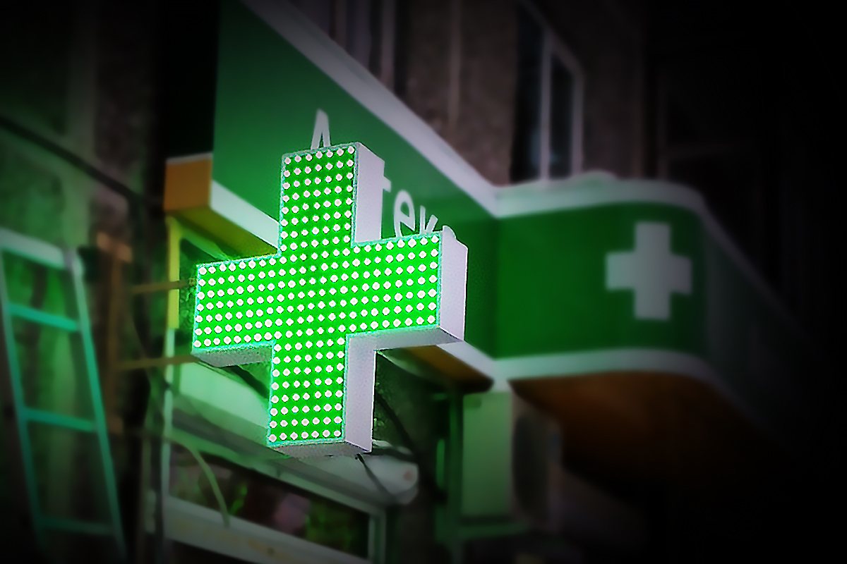 Заходя в аптеку, люди сталкиваются с рекламными конструкциями различных форматов. Частота контактов потенциальных клиентов с рекламой, размещенной, к примеру, на фасаде здания в виде аптечного креста, находится на очень высоком уровне. По статистике, с данной рекламной вывеской, установленной на фасаде аптеки, люди могут контактировать до нескольких тысяч раз в сутки.