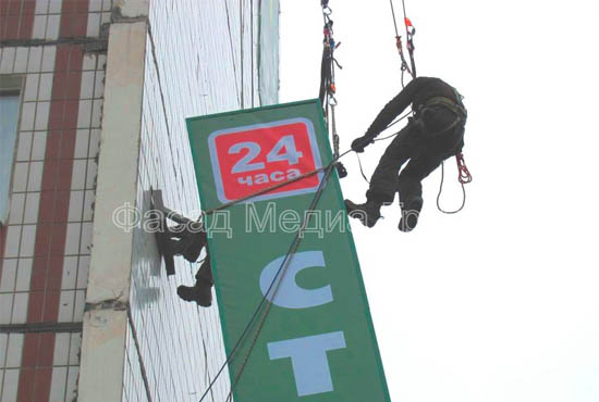 Какие конструкции наружной рекламы устанавливаются/демонтируются при помощи альпинистов?