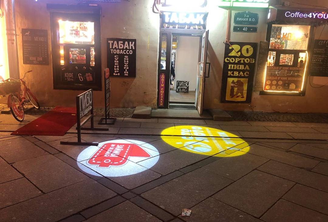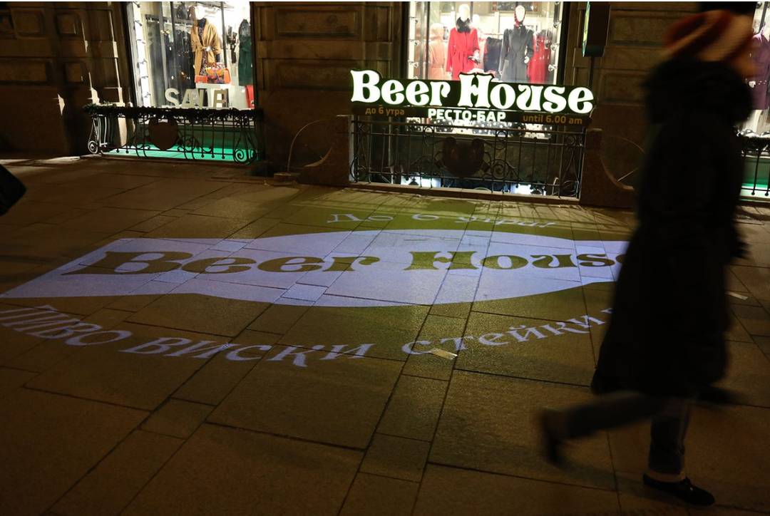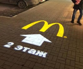 Возникает закономерный вопрос: «Что такое реклама на асфальте?». Реклама на асфальте представляет собой информационное объявление, нанесенное на тротуаре или проезжей части при помощи специальной краски и трафарета или демонстрируемое при помощи высококачественной проекции с применением специальных видеопроекторов (гобо-проекторов). Гобо-проектор – это высококачественный светодиодный проектор, способный демонстрировать как статичное изображение, так и движущуюся картинку.