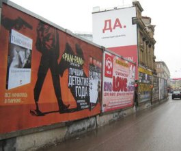 Существуют различные виды рекламы на заборах в Сосновом Бору: