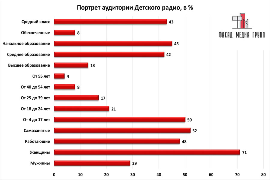 Целевая аудитория рекламы на «Детском радио» в Сосновом Бору обширна. «Детское радио» слушают: