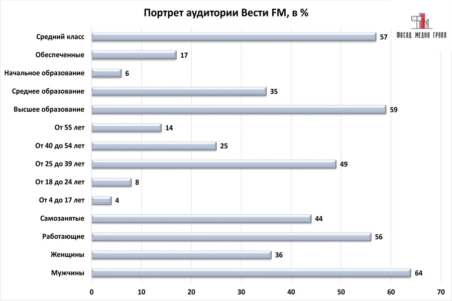 На вопрос: «Какова целевая аудитория радио «Вести ФМ»? - можно указать следующее: