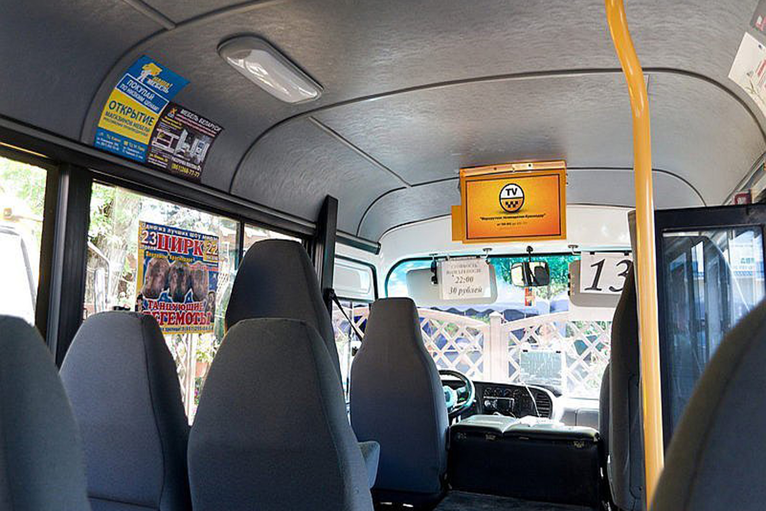 Реклама на мониторах в маршрутке на фото выше