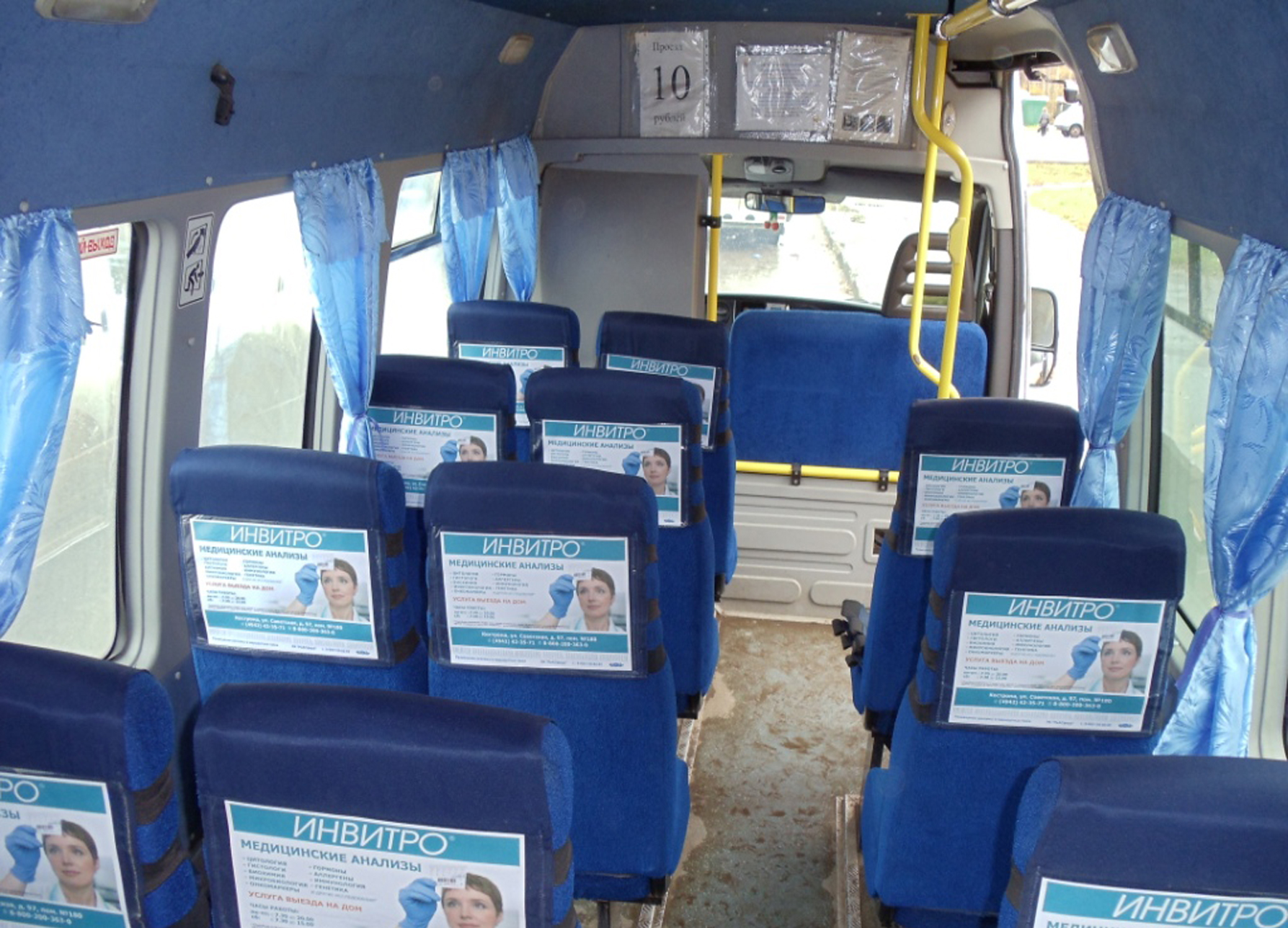 Реклама на подголовниках в маршрутке на фото выше