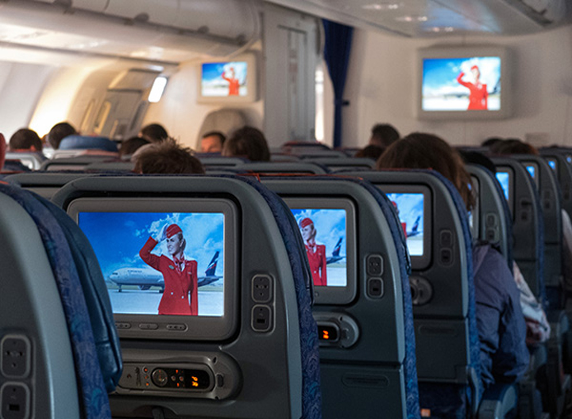 Реклама на мониторах в самолетах на фото выше