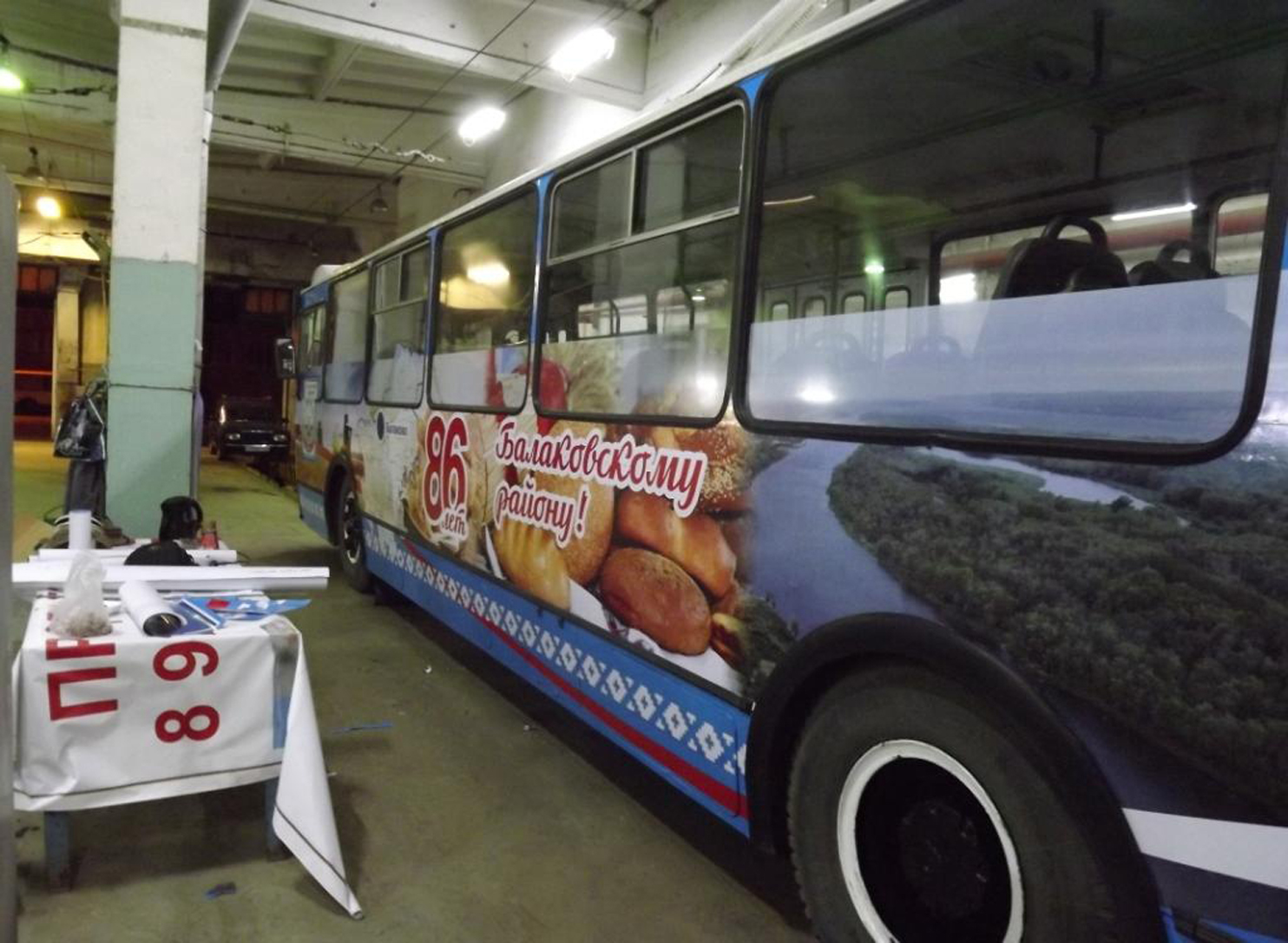 3) процесс брендирования (оклейки) троллейбуса рекламой: