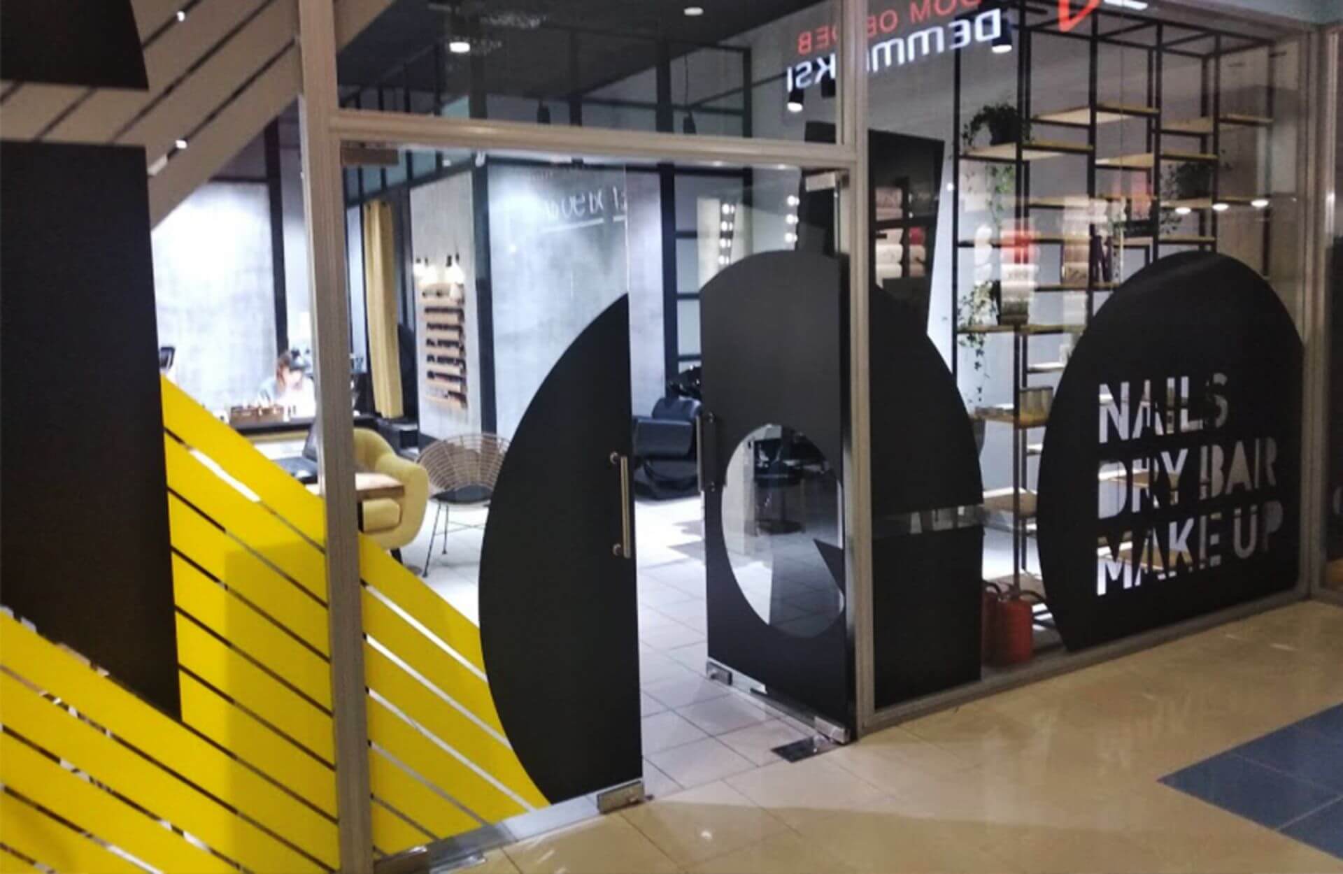 Пример брендирования входа и зоны ресепшн в бизнес-центрах:
