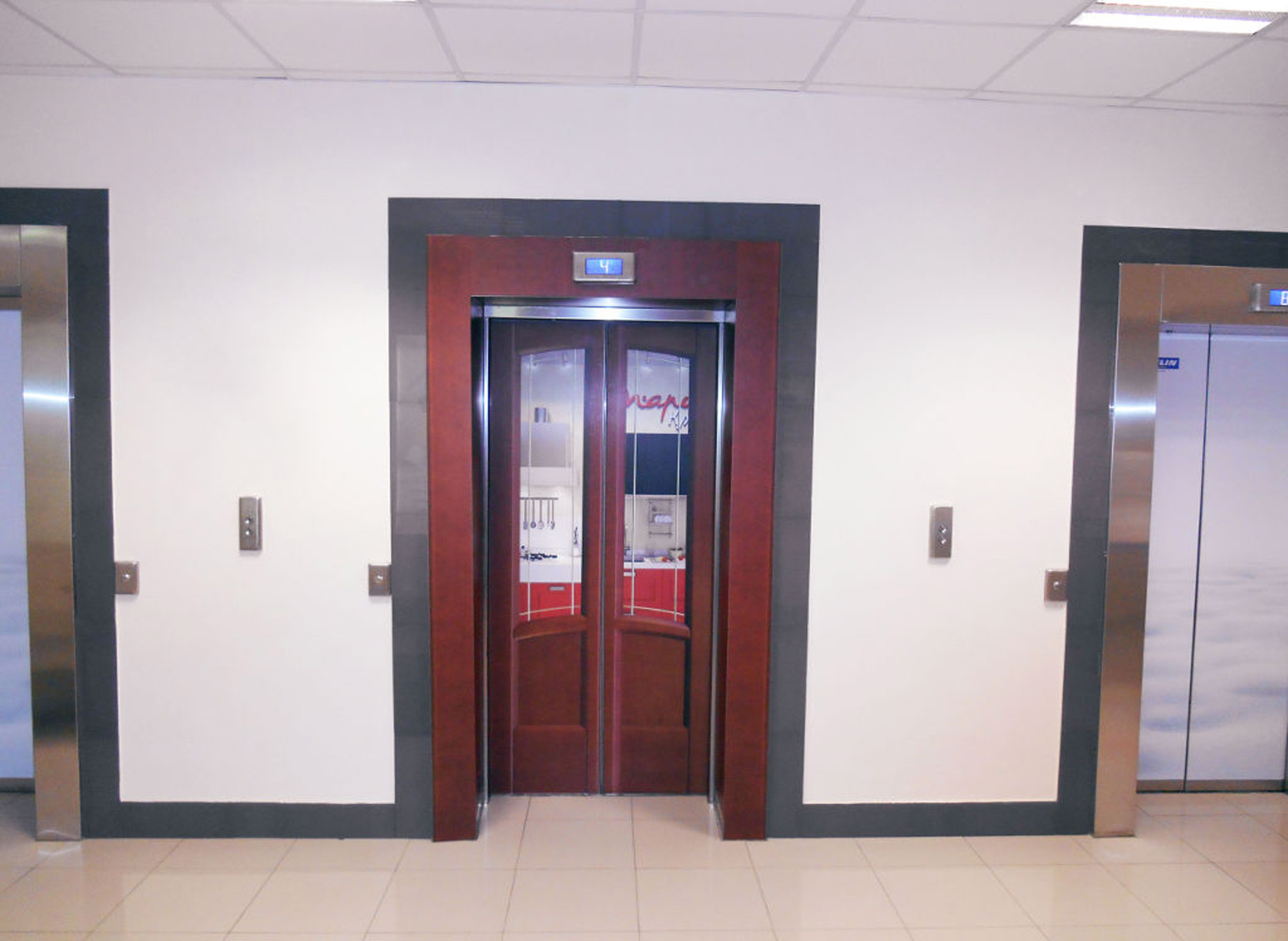 Пример брендирования лифтов в бизнес-центрах: