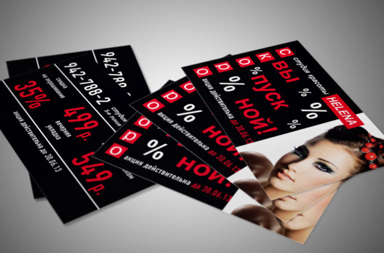 Пример печатных рекламных материалов в салоне красоты: