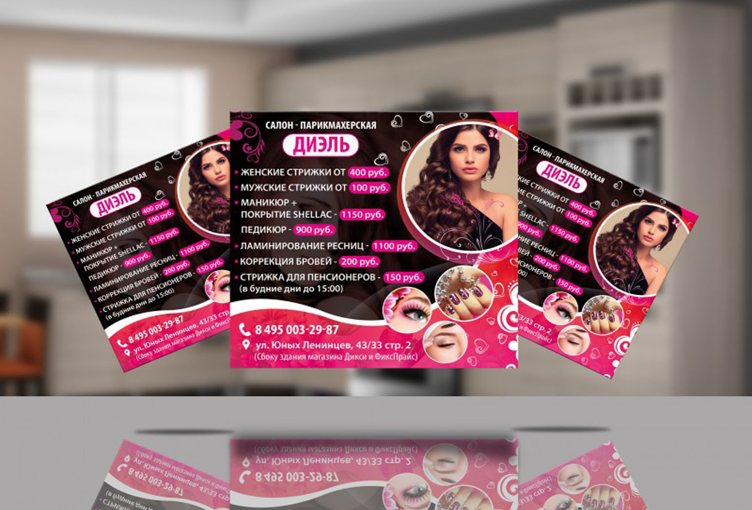 Примеры наших работ при размещении рекламы в салонах красоты представлены ниже: