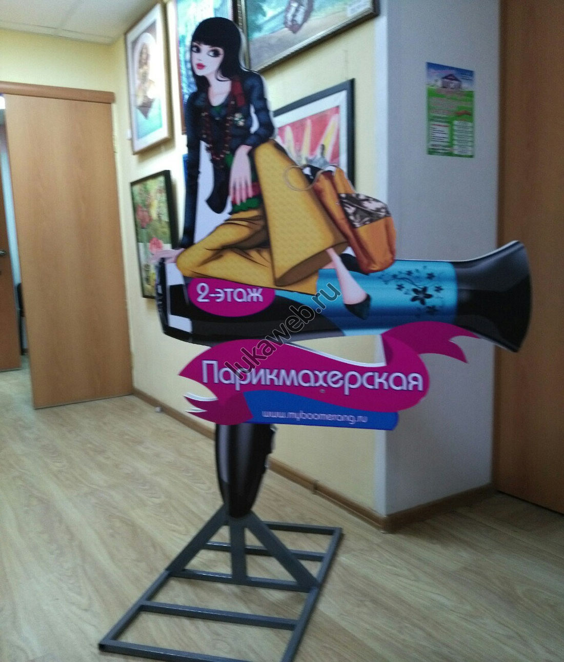 Пример рекламы в виде ростовой фигуры в салоне красоты: