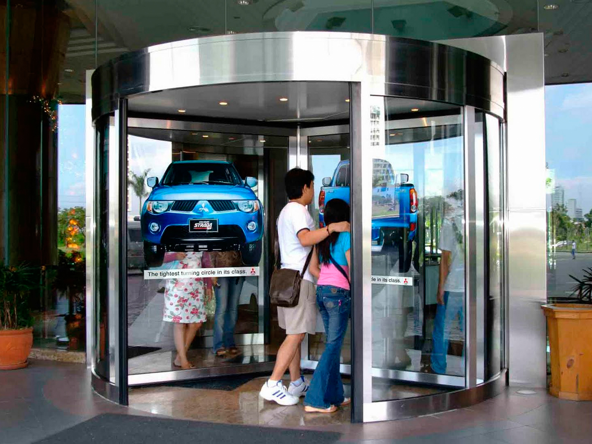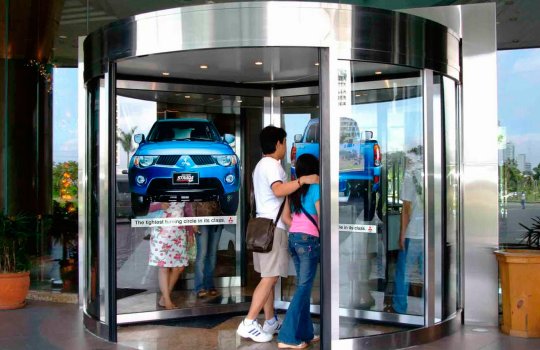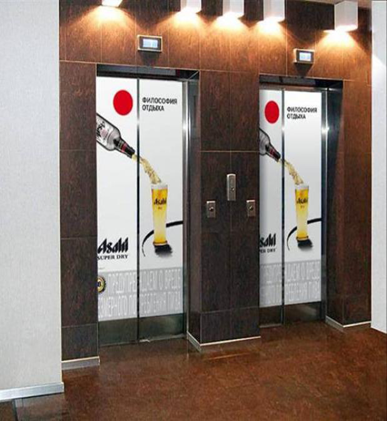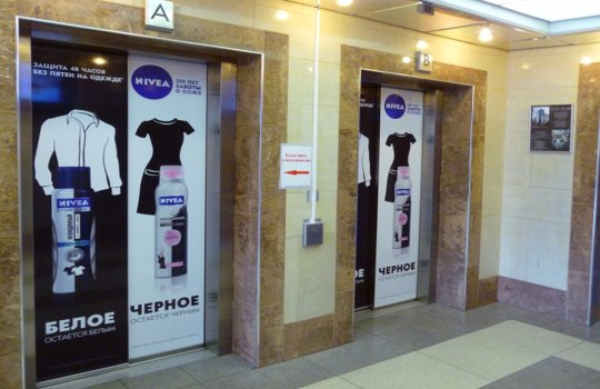 Пример брендирования лифтов в торговых центрах: