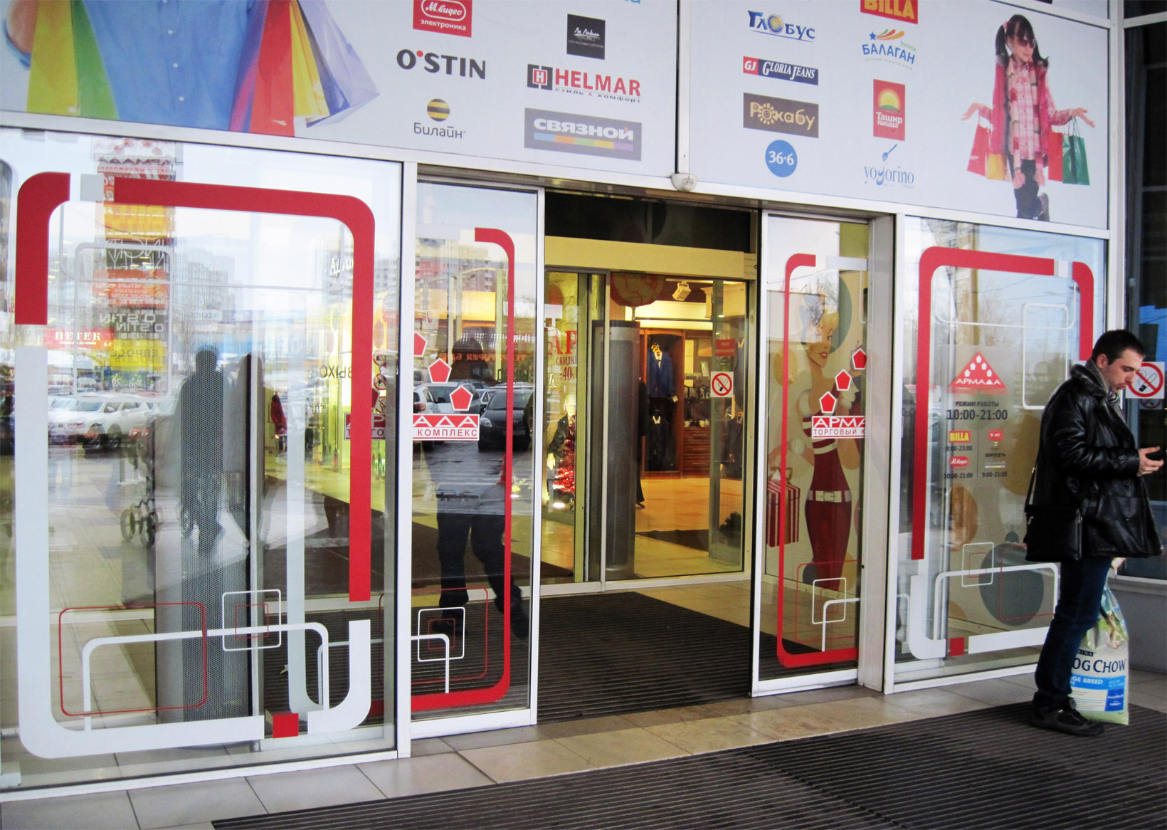 Пример брендирования входа и зоны ресепшн в торговых центрах: