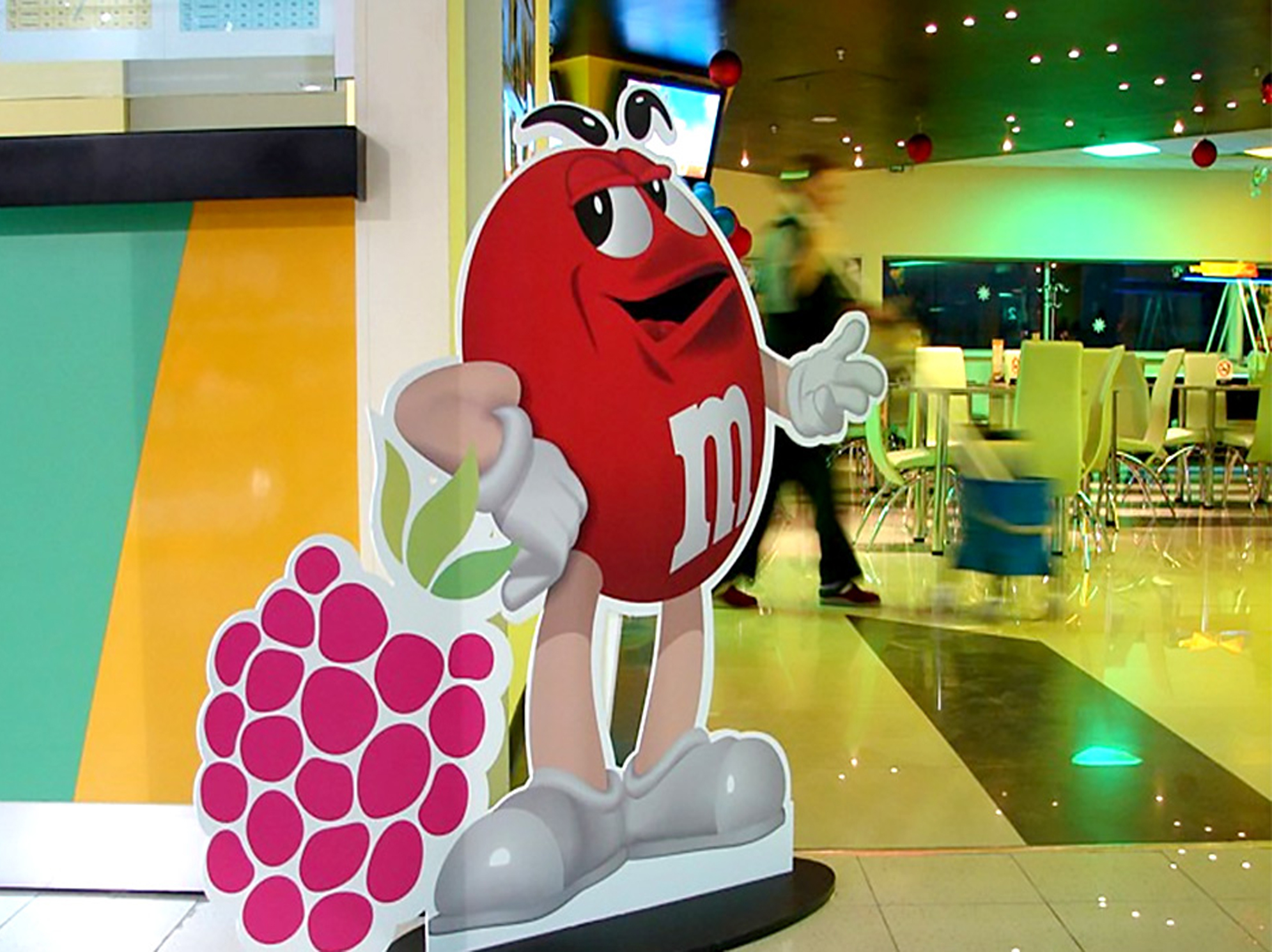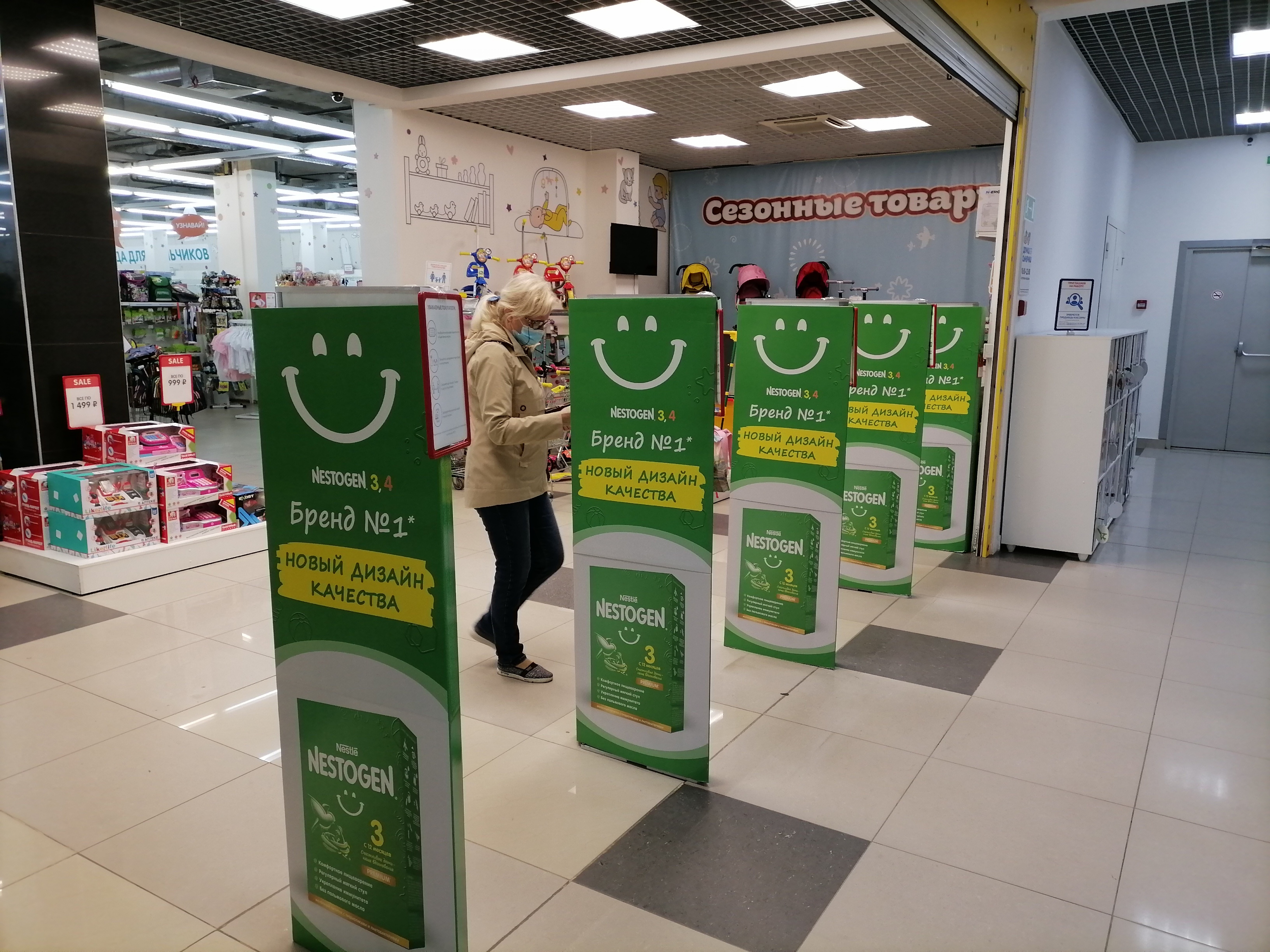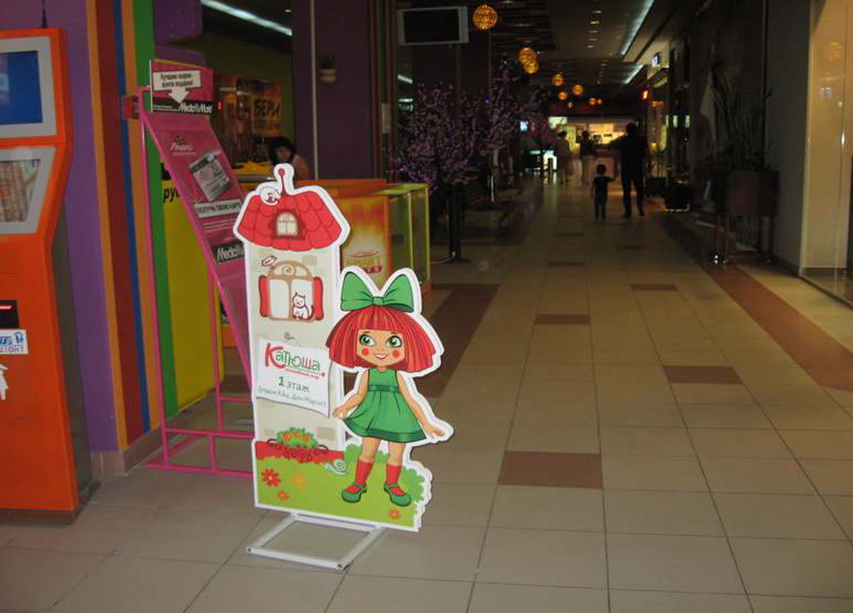 Пример рекламы в виде напольных конструкций в торговых центрах: